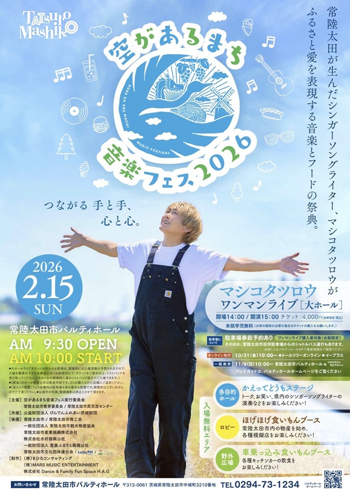 2026.2.15㈰に開催される『空があるまち 音楽フェス2026』に協賛させていただきました。
